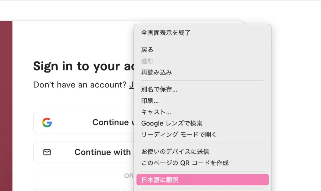 ちなみに、サイトの言語が英語で読みにくい場合は、右クリックから日本語に翻訳できます。