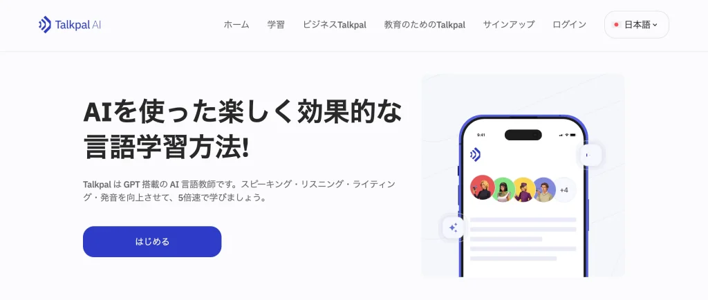 TalkpalはGPTを搭載したAI言語学習ツールです。